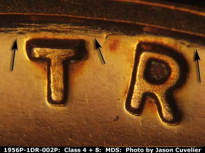 Curved die scratches above TRUST. Obverse is MDS. Reverse