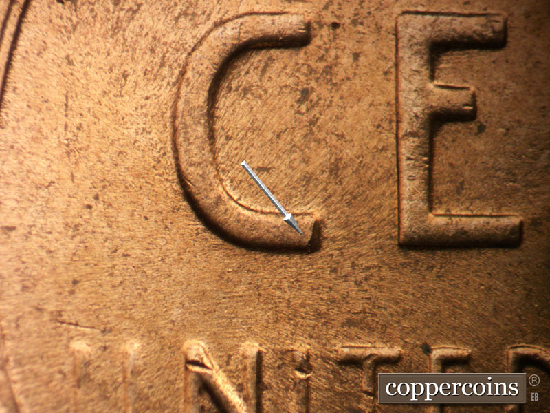 ENE die scratches in O of ONE. ENE die scratches connect E in ONE to second U in UNUM. Generally N/S die scratches though STATES and AMERICA. Die chip on lower C in CENT.