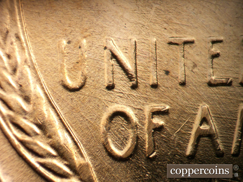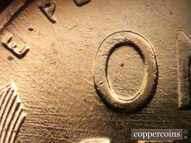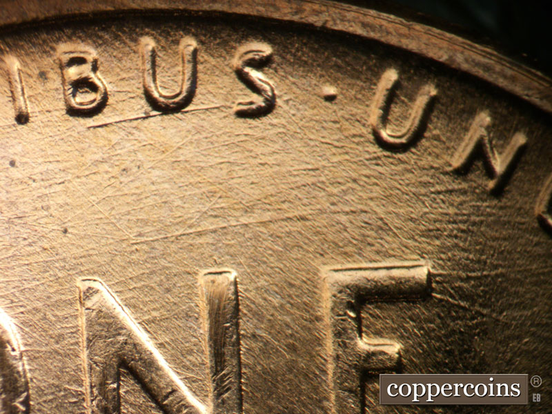 Large die dot under O in ONE. Die gouge in lower E in ONE. SW die scratch from E in STATES to C in AMERICA. Die dot east of F in OF.
