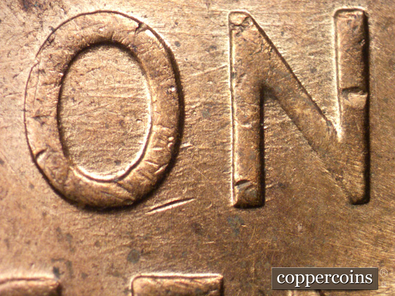 E/W die scratches through PLURIBUS. Crossing die scratches through CA in AMERICA. Crossing die scratches though N in UNITED through OF. E/W die scratches between left wheat stalk and C in CENT.