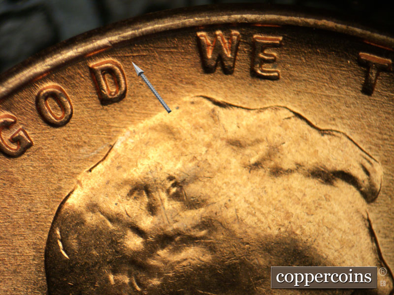 Light crossing die scratches above 9 in date. Concentric die scratches on lower jacket. E/W die scratches under LIBERTY. Heavy short E/W die scratch from upper D in GOD. Heavy die dot between US in TRUST. Reverse is MDS Reverse