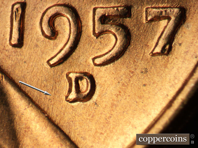 Curved die scratches from top of N in ONE. Crossing die scratches between T in CENT and second T in STATES. N/S die scratch from U in UNITED to left wheat stalk.