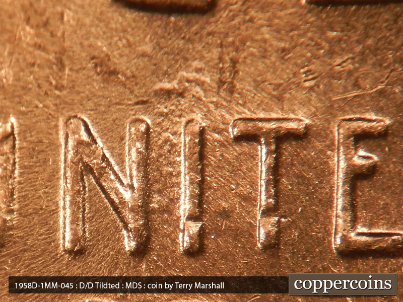 A die crack and die chip can be found at the lower right wheat ear. Die damage around the NIT in UNITED.
