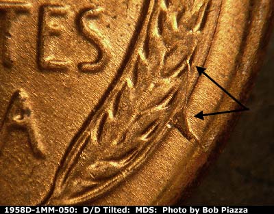 Heavy die break on left wheat stalk. Die crack on right wheat stalk.