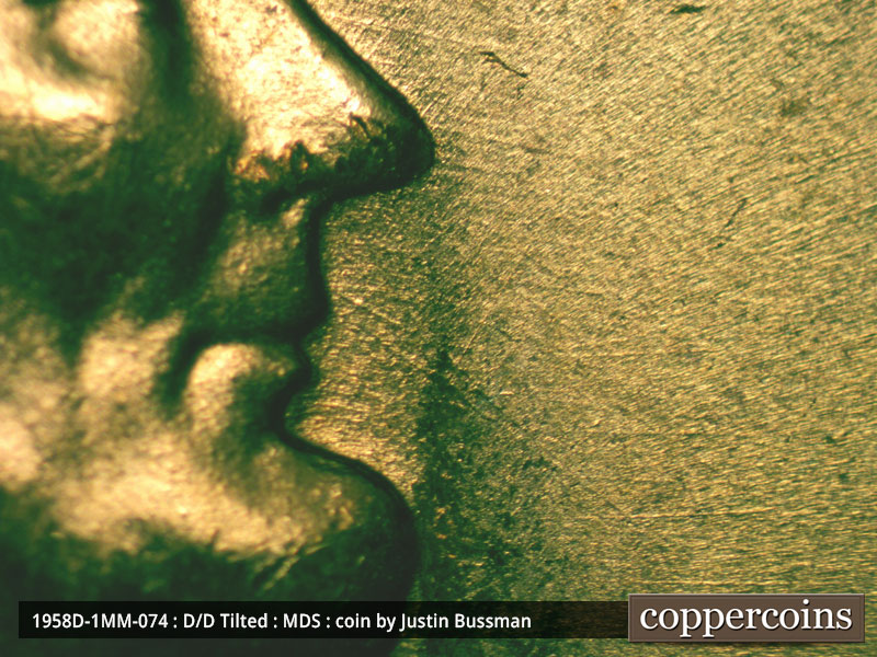 A heavy die dot shows below the point of the 5 of the date. NW-SE die scratches show in front of the face. A heavy die dot shows above the hair between "GOD" and "WE." A die dot shows a full letter height above the E of LIBERTY. Reverse is LMDS.