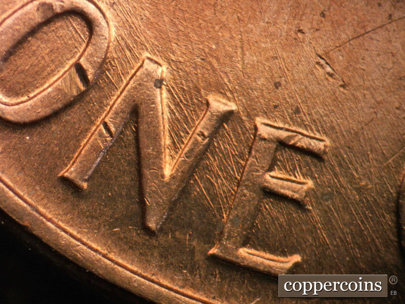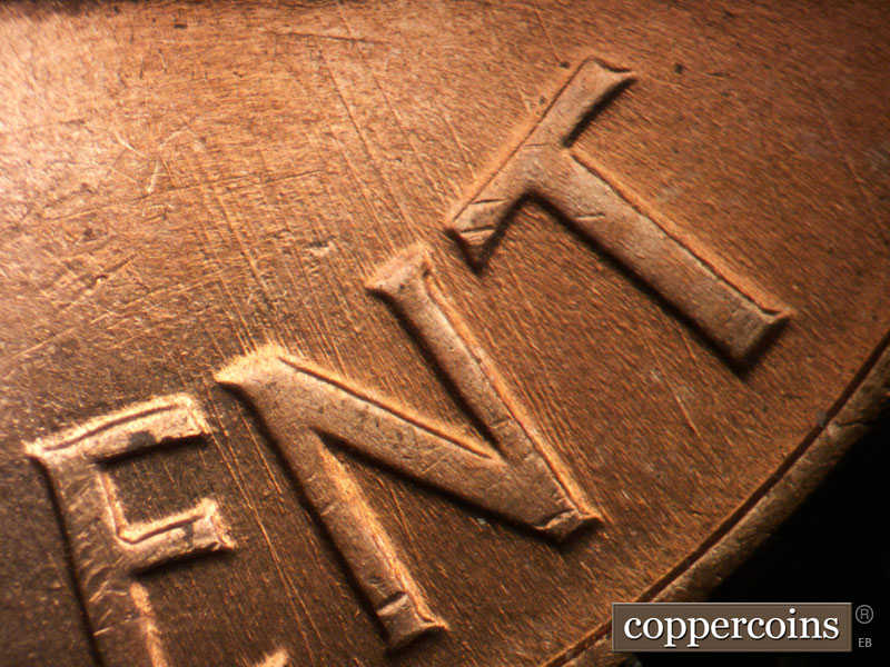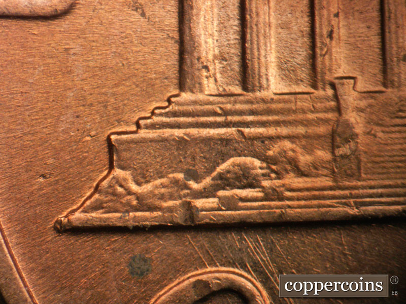 Reverse Die # 001: Die cracks on columns 10, 11 & 12. Die scratches from right cornice to the R in AMERICA. SE die scratches through ONE CENT.