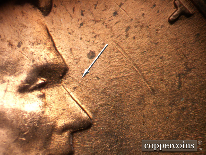 Generally NW/SE die scratches through date. E/W die gouge under R in LIBERTY. SE die scratches in front of forehead. Reverse is EMDS.
