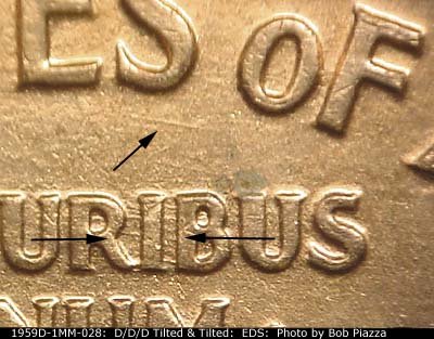 A short E-W die scratch below the 2nd S of STATES. Die scratches between the R, I, and B of PLURIBUS. 2 short die scratches in the upper crotch of the N of ONE. Reverse is MDS.