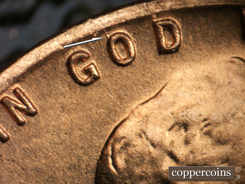 Die gouge on 9 in date. Numerous die scratches run N-S through LIBERTY. NNE die scratch above LI in LIBERTY. Die gouge on upper O in GOD. Reverse is MDS
