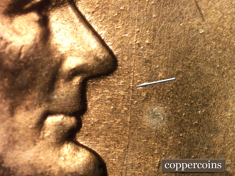 Die gouges between lower lapel and rim. Die crack on shoulder. Light die scratches through TY in LIBERTY. SW die scratches from back of hair. N/S die scratch in front of face. Concentric die scratches on temple. Reverse is MDS