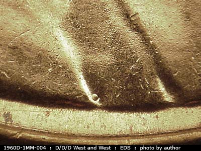 Large date. The most difficult 1960D repunched mintmark to obtain, known only in EDS and MDS. Two small hooks protrude from the northwest corner of the mintmark.