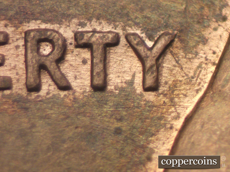 Numerous die polish lines above date and extending through 1960, heavy die polish lines through LIBERTY and the fields above and below.