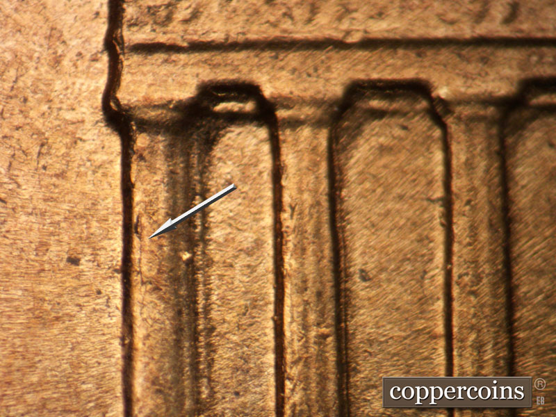Reverse die changed from EDS. Small die gouge off left eave. Light E/W die scratching through E PLURIBUS.