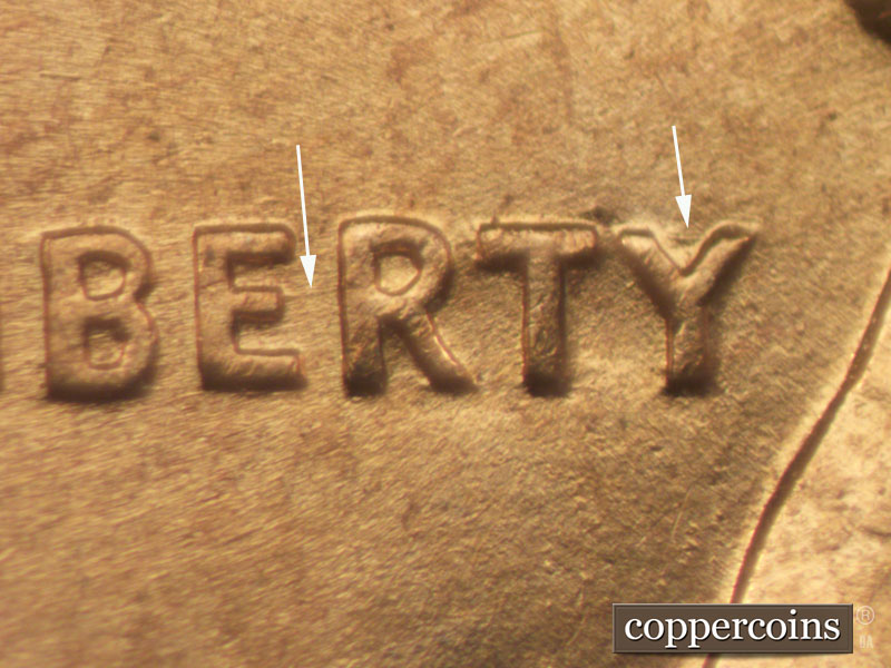 Long die scratch runs NE-SW from bow-tie to top of 9; light horizontal die scratch connects ER of LIBERTY, light scratch in upper arms of Y on LIBERTY