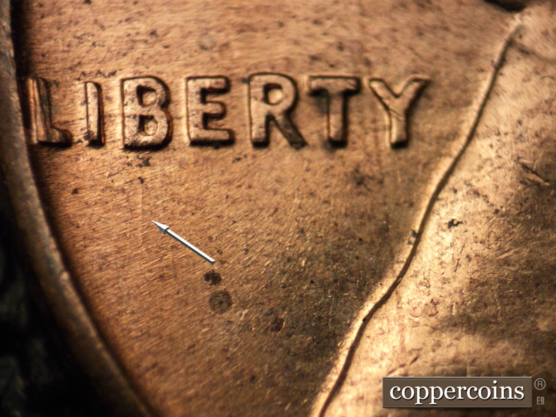 Die scratch under B in LIBERTY. Reverse is MDS