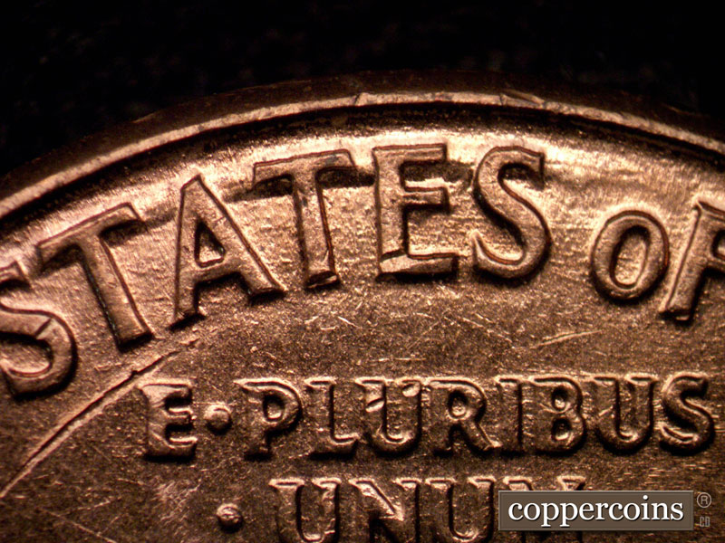 Die clash through STATES. E/W die scratches from E to N in CENT. Die gouge from middle leg of E in ONE. Die break in O of ONE.