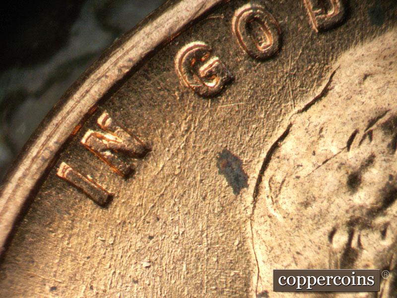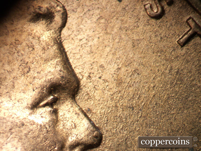 Concentric die scratches across lapel and in shoulder fold. Light SE die scratches under LIBERTY. Small SE die scratches under WE. ESE di scratches under US in TRUST. Reverse is MDS