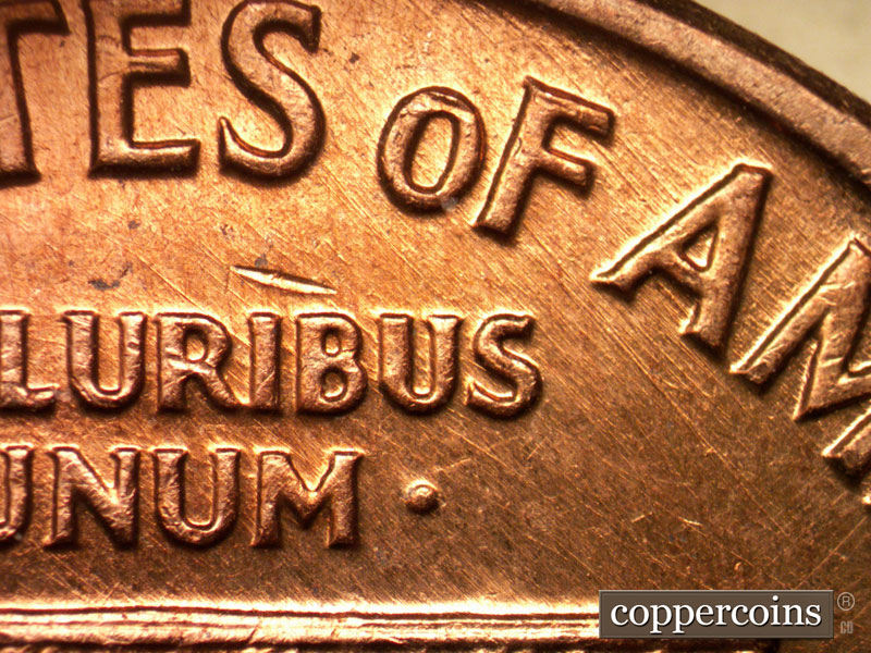 Die scratch connect first T in STATES to A. SSE die scratch in bay 4. SE die scratch from right cornice through C in AMERICA. Multidirectional die scratches through ONE CENT.