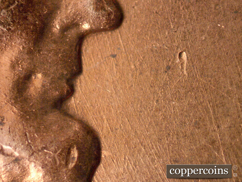Die scratch connect first T in STATES to A. SSE die scratch in bay 4. SE die scratch from right cornice through C in AMERICA. Multidirectional die scratches through ONE CENT.