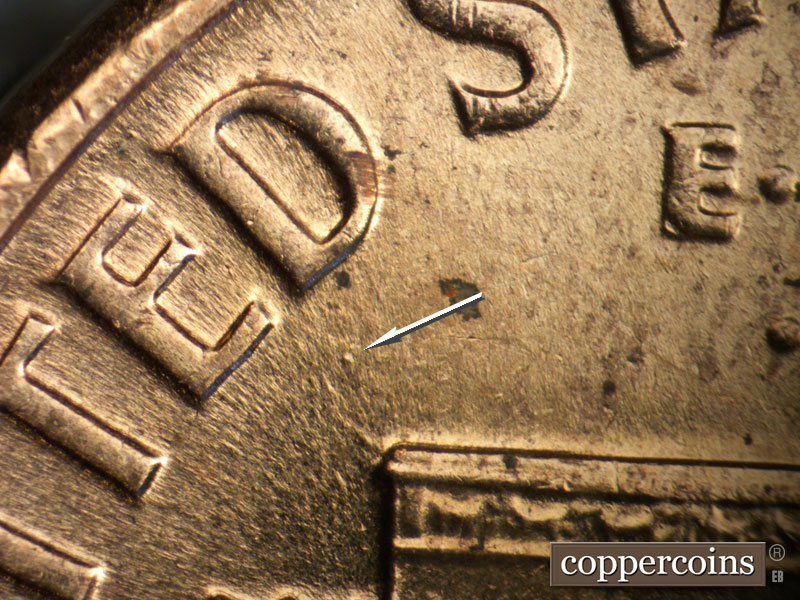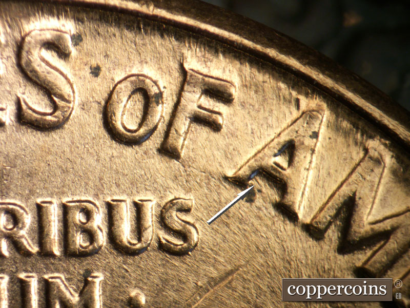 A die dot in the D of United. Die gouges inside the C of America.