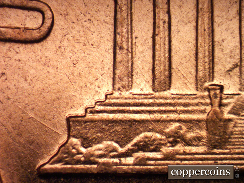 Most die scratches on reverse are worn away. Curved die scratch through D in UNITED. Curved die scratch from left base. SE die scratches connect CEN in CENT. Die scratches connect NE in CENT.