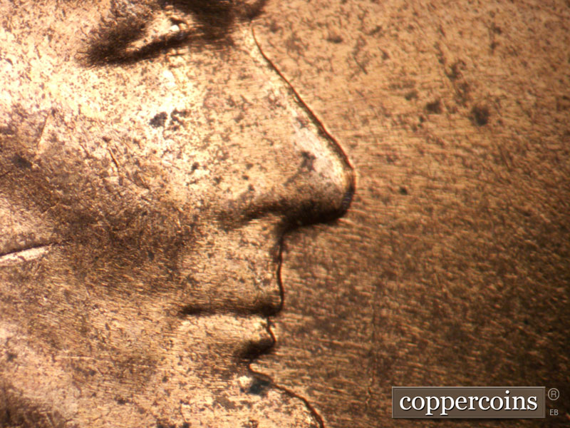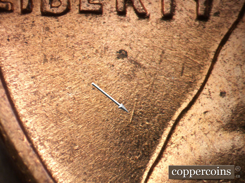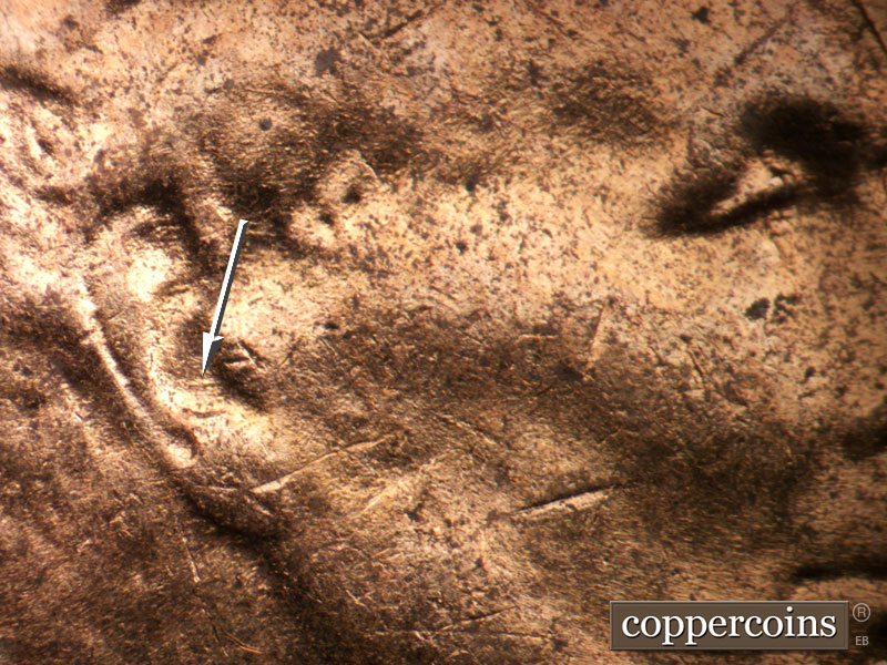 SW die scratch from base of hair. ENE die scratch south of R in LIBERTY. Short E/W die scratches in ear. ESE die scratches from mouth. Reverse is LMDS