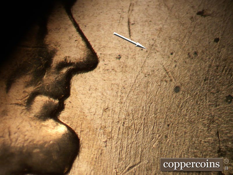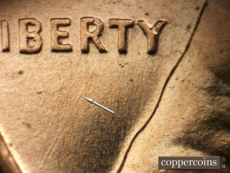 N/S die scratches through date. SSw di scratch on jacket. SW die scratch under R in LIBERTY. NE die scratch in front of nose. Reverse is MDS