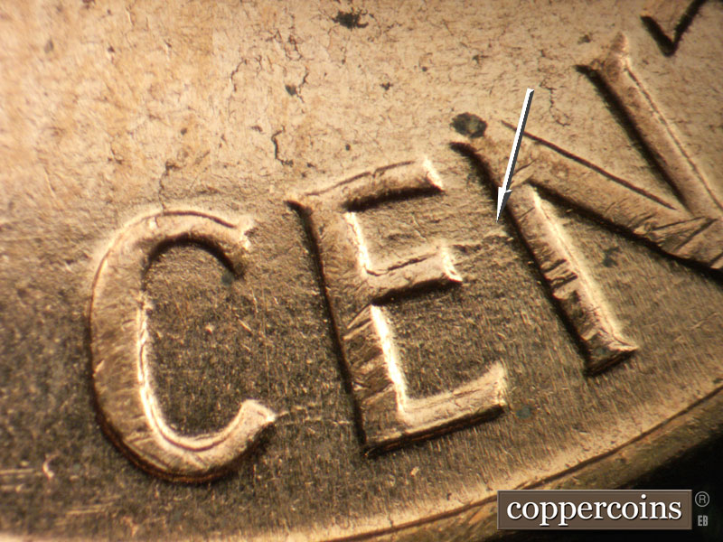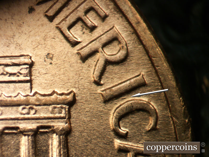Small die gouge between IC in AMERICA. Die gouges between EN in CENT. E/W die scratch above T in CENNT. DIe gouges near E in ONE.