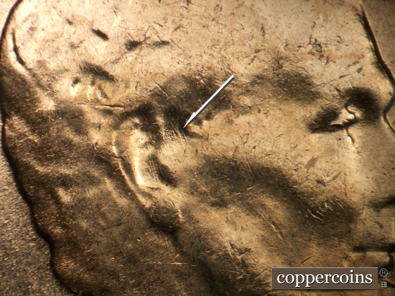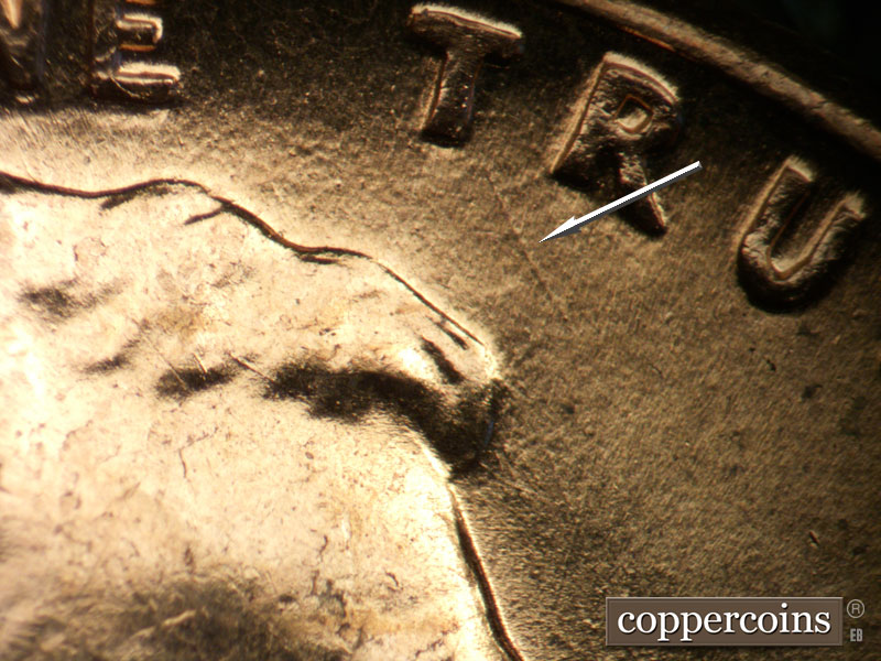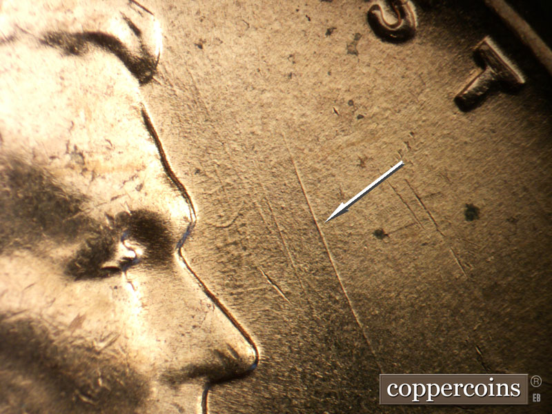Pair of SSE die scratches through 9 in date. Pair of short SSE die scratches in shoulder fold. SSE die scratch between TY in LIBERTY.SE die scratch from first T in TRUST. SE die scratch in front of face. Reverse is MDS