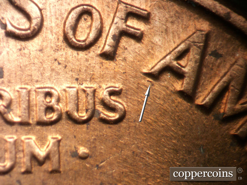 Die gouge under first A in AMERICA. Die crack on column 1. Die crack on left base.