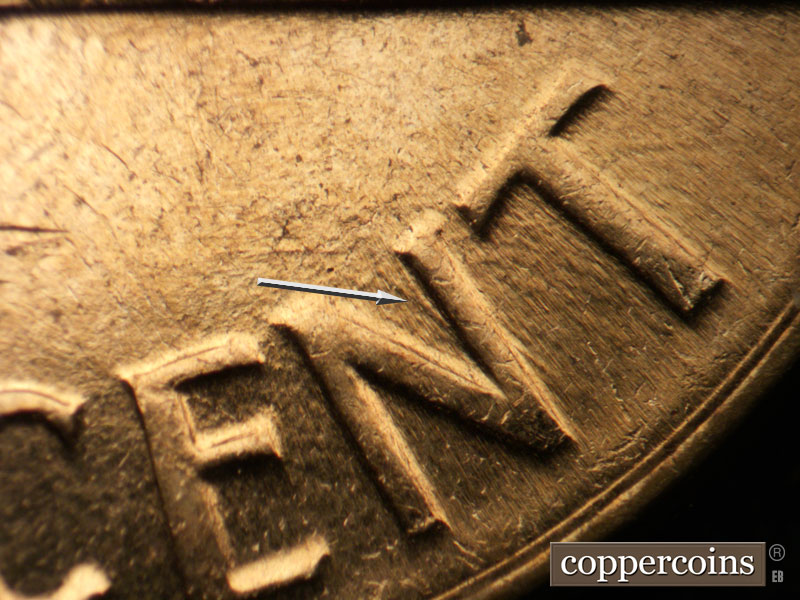NW die scratch in upper N in CENT. Worn concentric die scratch through N to E in ONE.