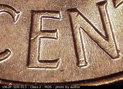 E-W die scratches show underneath the memorial. A NE-SW die scratch runs behind the head of Lincoln inside the memorial.