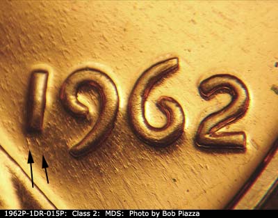 Two heavier die flow lines below the 1 of the date. Obverse is MDS. Reverse