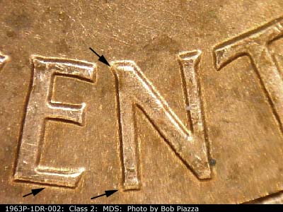 A nice medium spread can be seen on all the reverse lettering. The obverse of this variety is a minor doubled die that shows as a small bar under the L of LIBERTY.