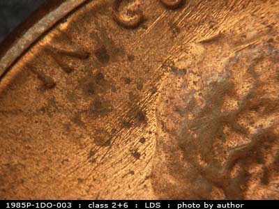 A number of strong SW-NE die scratches show throughout the obverse. Of note especially is a strong die scratch immedicately in front of the lips.
