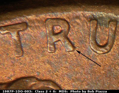 Extra thickness with separation lines on the date and LIBERTY, and notching on the R of TRUST.