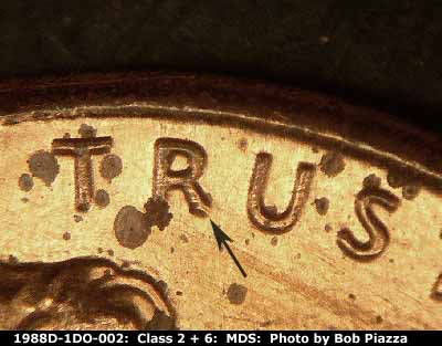 Light extra thickness and some minor separation lines can be seen on the date. A notch shows on the R of TRUST, and the RTY of LIBERTY shows light extra thickness.