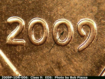 A die crack shows on the forehead. A die crack is forming on the top & back of the head. A small die gouge inside the second 0 of the date. Obverse is EMDS.