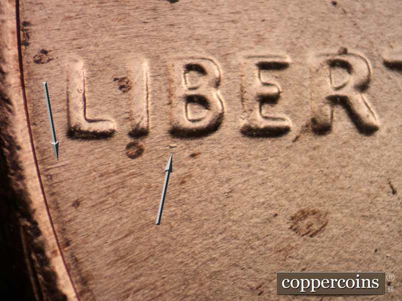 Die crack across hair. Small die dot under B in LIBERTY. Heavy flow line under L in LIBERTY.