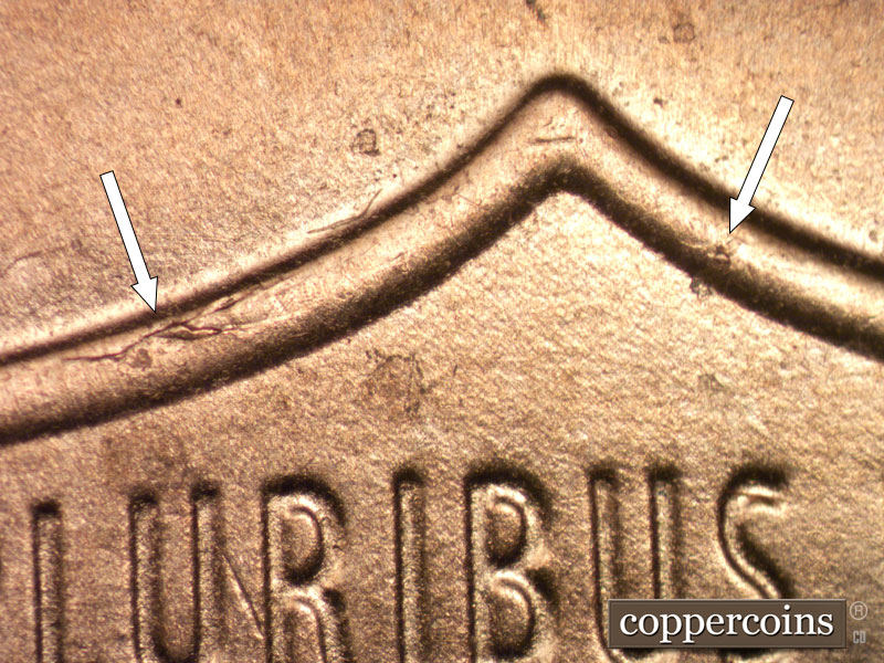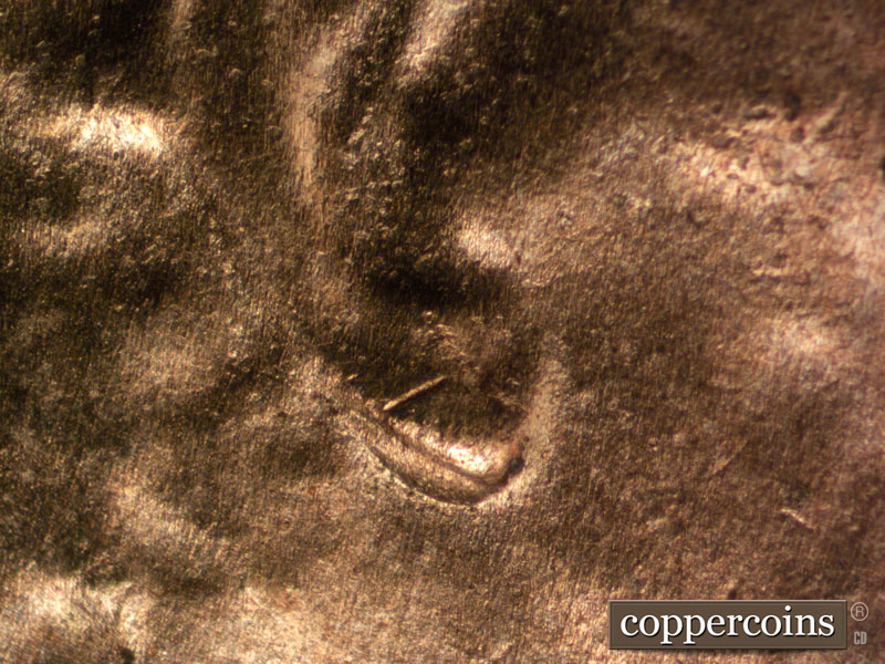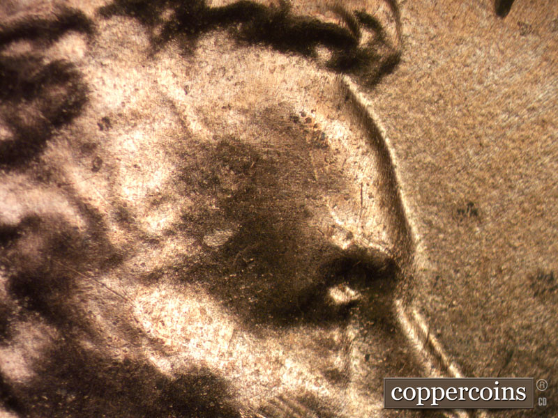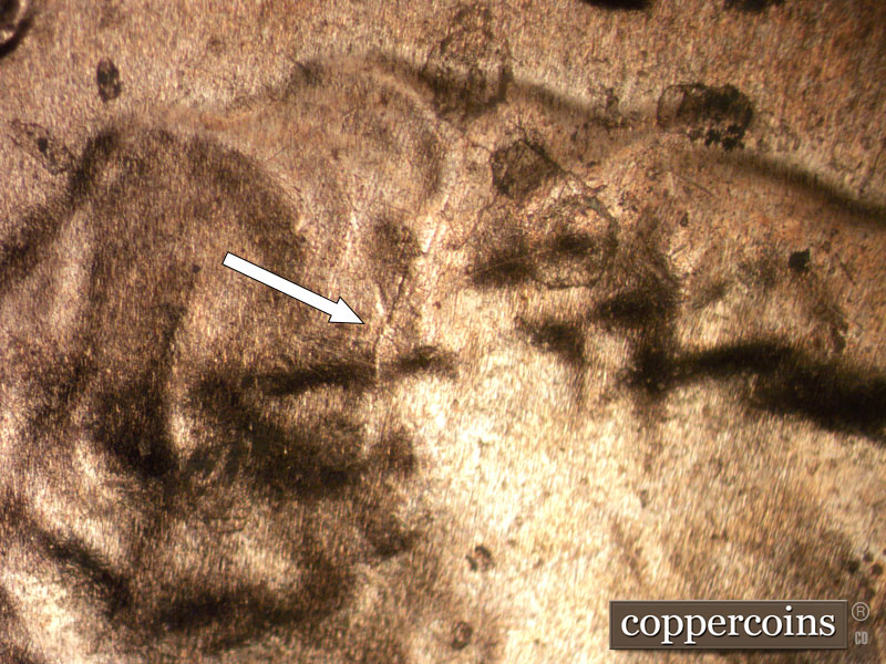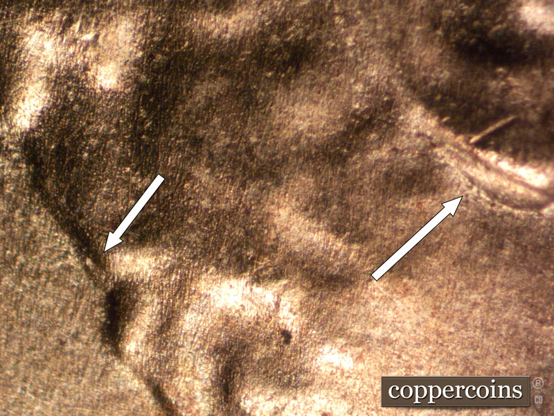 Multiple die cracks show on the head, to include the forehead and the top of the hair.